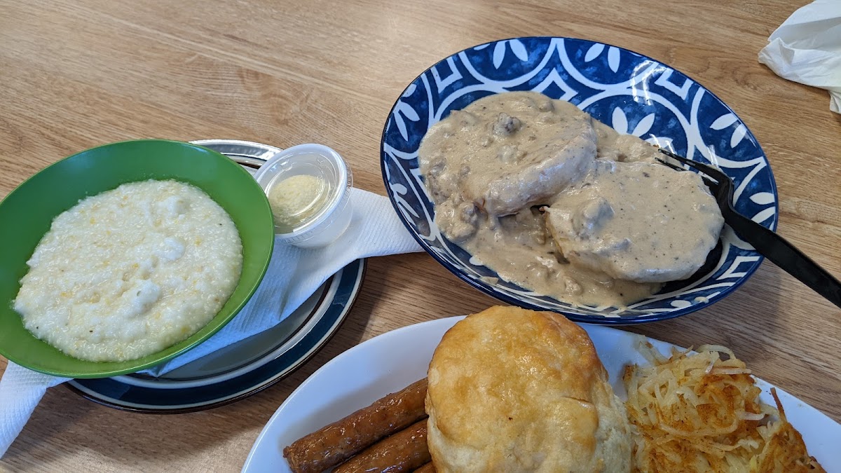 Let me start with saying the breakfast food is amazing! If we lived here, this would be our spot. The prices are awesome too. So when we walked in we didn’t really know what to do. You’ll order at the counter and then find a place to sit. Get your own drinks. They will bring out the food. This is a very different set up BUT the people are SO friendly and like I said the food was so good! The biscuits and gravy were the best we’ve had during our week visit in NC. The grits are good too. Oh and the biscuits…YUM! Good portions too. Try this place! Okay I’m done.