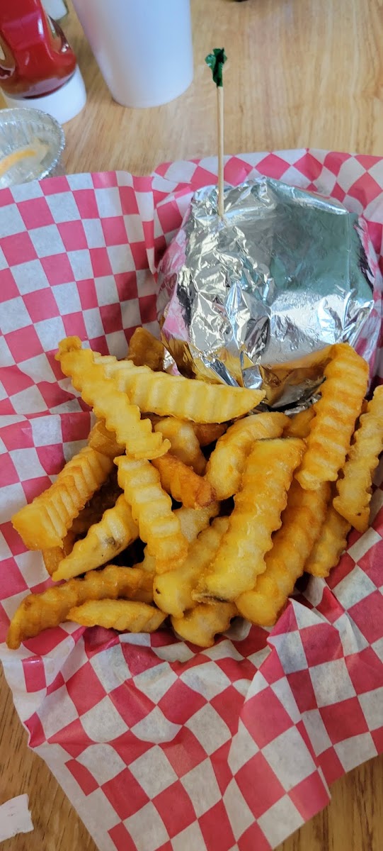 above average price for big juicy flavorful burgers. And I love the crinkle cut fries with seasoned salt. Small and quaint simple sit down spot that's quiet