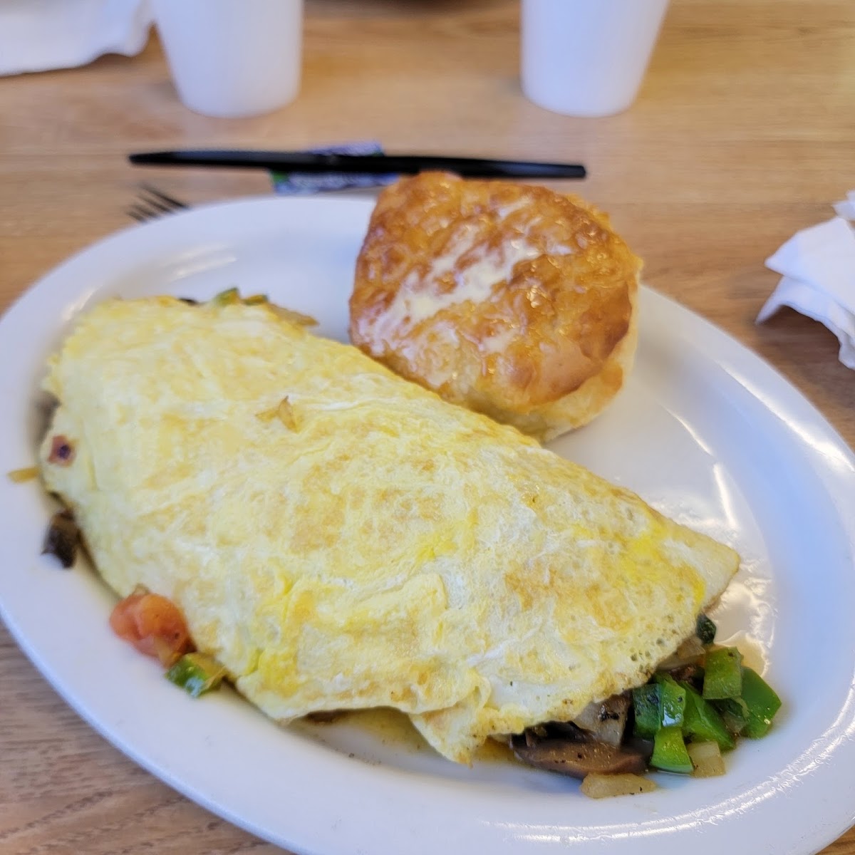 When going west on 74, this is our go to for breakfast. Huge omelettes, served with toast or biscuit. Coffee is hot and fresh. You busy your own table when you are done. Simply delicious.